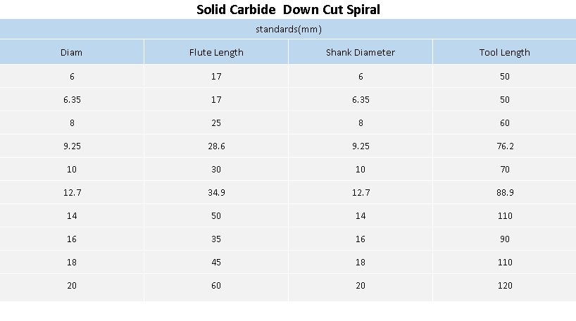 Solid Carbide 2 Flute Finishing Spiral Bits Down Cutter Spiral