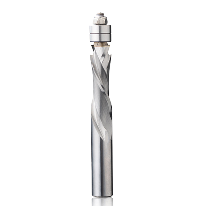 Description : 1. They work with plywood, MDF, solid woods, plastic laminates and non-ferrous metals like aluminum; 2. The 'Up-Cut' and 'Down-Cut' combination Leaving behind a smooth & sharp finish free of chips on both the top and bottom edges; 3.The twin ball-bearing pilot enhances the stability of the tool. 4.Accurate positioning, effectively increase work efficiency and provide better quality.