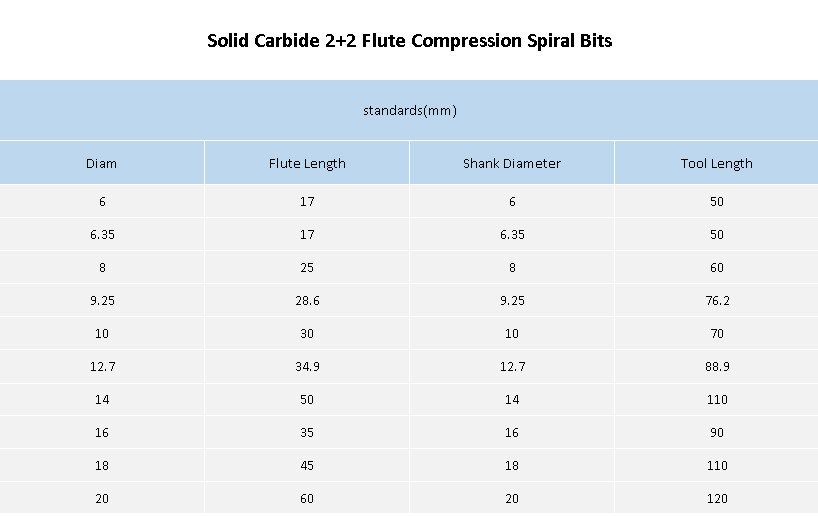 Solid Carbide 2+2 Flute Compression Spiral Bits
